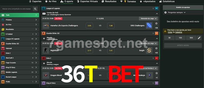 O 36T Bet oferece uma grande seleção de opções de apostas em e-sports com probabilidades competitivas
